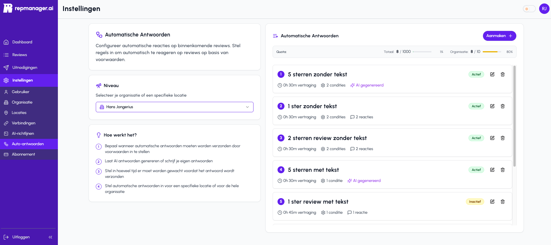Of je nu 3 of 30 locaties hebt: Repmanager.ai schaalt met je mee. Start vandaag nog.