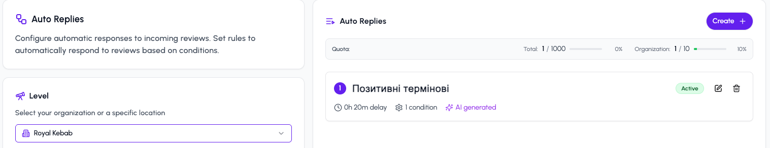 - Native-level AI: Repmanager automatiseert het merendeel van de positieve reviews in vloeiend Oekraïens. De AI begrijpt de context en nuances van de taal, waardoor reacties persoonlijk aanvoelen.
